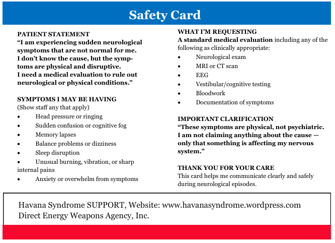 We created Police safety cards to share with police, hospitals, government leaders nationwide and for victims who filed a report with DEW Police to use when they need help.